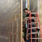 „Bei der Suche nach einem Arbeitsraum, der sowohl in seinen Dimensionen ausreichend groß ist als auch ein möglichst ungestörtes und sicheres Arbeiten ermöglicht, erwies sich der nahe zum Zeremoniensaal gelegene Salon Franz Karls als ideal. Glastüren trennen ihn vom Besucherstrom ab, und mit seinem nahezu quadratischen, ausreichend großen Grundriss ermöglicht er die zeitgleiche Bearbeitung der etwa drei mal vier Meter großen, nun auf Staffeleigerüsten montierten Gemälde“, so Martin Siennicki, Restaurator der Schönbrunn Group. Um die Restaurierung der Wandvertäfelungen und der Decke unter bestmöglichen Bedingungen durchführen zu können, wird der Zeremoniensaal in den kommenden Wochen in eine „Raum-in-Raum“-Konstruktion eingebettet. Diese architektonische Lösung in Form eines Gerüstes mit Plattform ermöglicht es den Besucher*innen, den Raum weiterhin zu durchqueren – trotz der laufenden konservatorischen Arbeiten und ohne Einschränkung ihres Rundgangs. Der Abschluss der Arbeiten wird Ende 2026 erwartet.