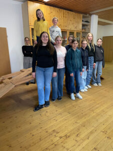 Die Girls beim Bau einer Leonardobrücke. © HTK