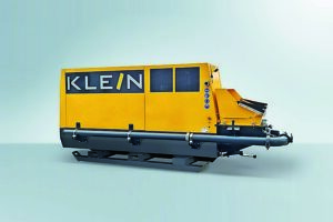 Mit der Modellreihe „KTP 220“ hat Klein stationäre Betonpumpen im Programm, die für anspruchsvollste Einsatzzwecke konzipiert wurde. Die Betonpumpen zeichnen sich laut dem Hersteller durch hohe Leistungsstärke aus. Eine kräftige Doppelkolbenpumpe befördert dabei in einer Stunde zwischen 65 bis maximal 171 Kubikmeter Fließmasse (je nach Geräteausführung) zuverlässig über große Entfernungen hinweg. Die Pumpe lässt sich auf Doppelachsfahrwerk oder Schlittenuntersatz montiert werden, als Motorisierung stehen Diesel- sowie Elektromotoren zur Verfügung. Als Zubehör ist unter anderem eine Funksteuerung erhältlich, mittels derer die Pumpe sich von der Ferne aus bedienen lässt. Die Funksteuerung zeichne sich dem Hersteller zufolge durch eine einfache, intuitive Bedienung aus, welche Maschinist*innen optimal beim Manövrieren der Maschine unterstützen soll.
