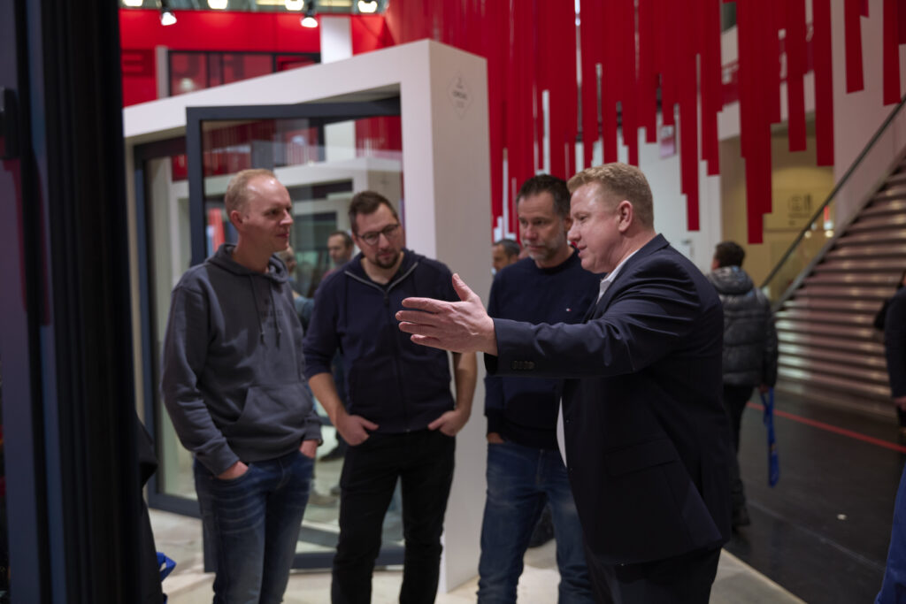 Nach der im Vorjahr erfolgten Integration von Hueck in die Hydro Building Systems freuten sich die Systemlieferanten Wicona und Hueck gemeinsam über die Fachbesucher*innen auf dem neu konzipierten Messestand.