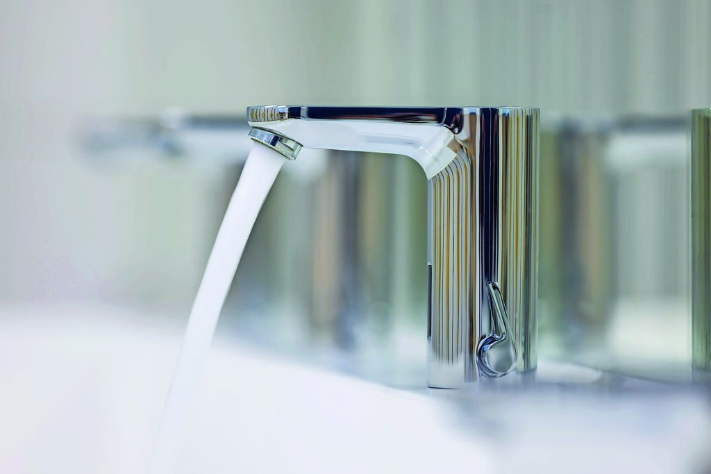 Im Vergleich zu regulären Einhebelmischern sparen Sensor-Armaturen bis zu 70 Prozent Wasser, Selbstschluss-Armaturen bis zu 55 Prozent. © Schell