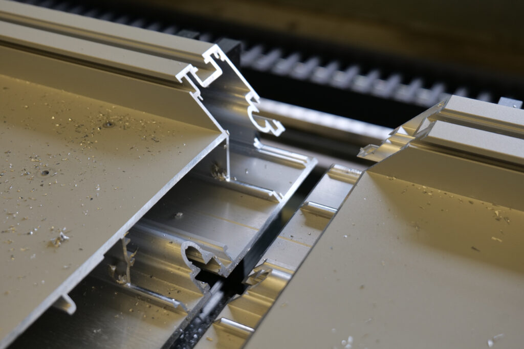 Vorbereitung und Zuschnitt: Im TS-Aluminium Werk wird das Lamellendach vorbereitet. Copyright: TS-Aluminium-Profilsysteme