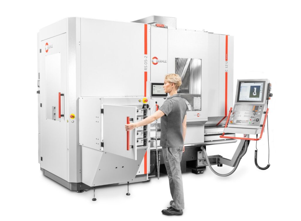 - das 5-Achs-Bearbeitungszentrum C 12 Gen2 mit dem Robotersystem RS 05-2, das Werkstücke bis 10 Kilogramm handhaben kann.