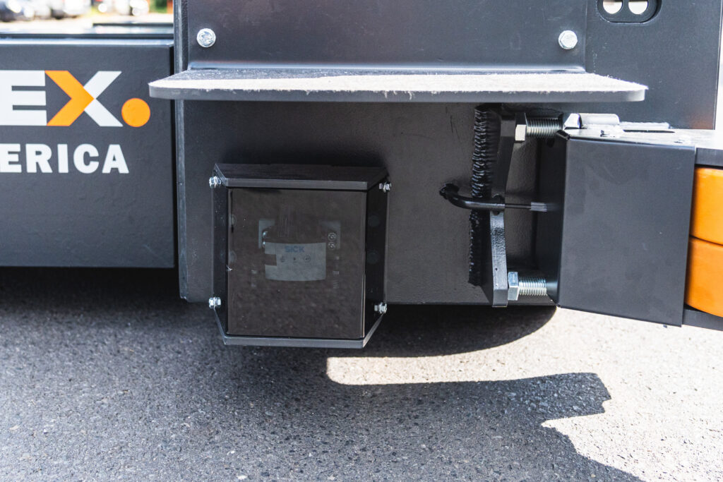 Das sensorische Assistenzsystem ermöglicht dem Fahrer eine halbautomatisierte Einfahrt des Mehrwege-Sseitenstaplers in den Schmalgang und reduziert das Risiko von Beschädigungen. Copyright: Hubtex