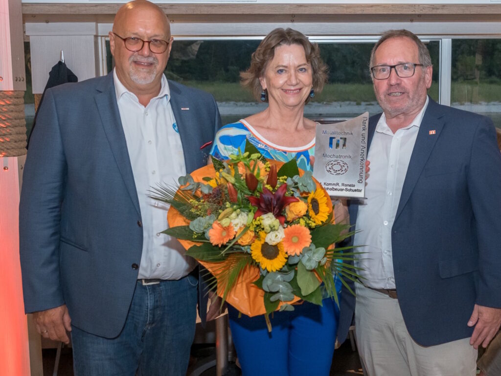 Dank und Anerkennung für Renate Scheichelbauer-Schuster (ehem. Bundesspartenobfrau Gewerbe und Handwerk) für die Zusammenarbeit mit den beiden Landesinnungen. (v.l.n.r.): LIM Andreas Kandioler (Mechatroniker NÖ), Renate Scheichelbauer-Schuster und LIM Harald Schinnerl (Metalltechniker NÖ). Copyright: christophdittrich.at