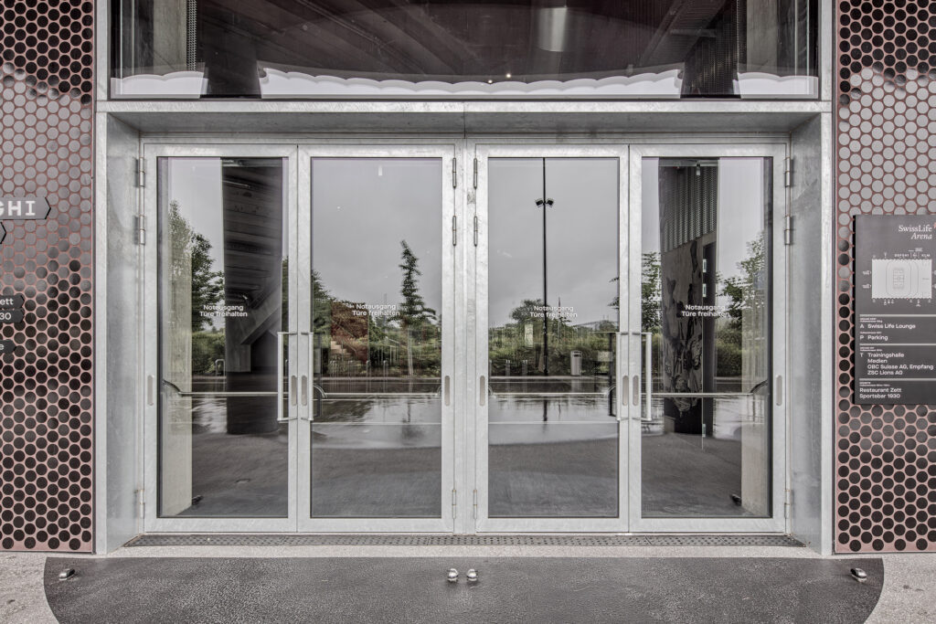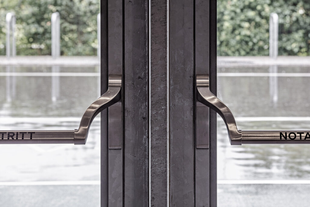 Bereits in der Frühphase war Forster Profilsysteme in die Planung involviert und trug gemeinsam mit den ausführenden Forster-Lizenzpartnern (Schneebeli Metallbau und Enderli Metallbau) insgesamt 140 Elementabschlüsse zum Bauwerk bei. Die Aussentüren sind im System forster unico HI ausgeführt und unterstützen durch sehr gute Wärme- und Brandschutzeigenschaften die Ziele der Energieeffizienz für das Minergie-zertifizierte Gebäude. Teils in Brandschutzklasse El30 sowie in den Systemen forster unico sind auch die Türen und Festverglasungen innen ausgeführt. Die vom Büro Caruso St John Architects gewünschte Profiloberflächenbehandlung „feuerverzinkt“ trägt bei allen eingesetzten Elementen zum gelungenen Entwurfskonzept bei. Um die Oberflächen der Elemente mit dem System forster unico EI30 feuerverzinkt ausführen und die Brandschutzisolatoren einbringen zu können, wurden objektspezifische Planungs- und Fertigungsmethoden (Fabrikationsmanagement) angewandt.