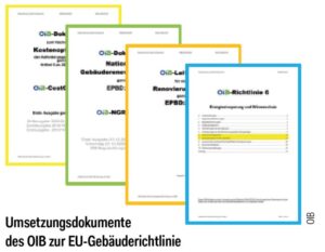 Die nationale Umsetzung der EPBD-Vorgaben wird hauptsächlich auf Ebene des Baurechts der Bundesländer erfolgen. Dazu sind folgende Regelwerke geplant, die vom Österreichischen Institut für Bautechnik (OIB) in den nächsten Monaten und Jahren herausgegeben werden: