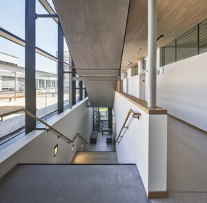 Das Projekt ist ein Paradebeispiel für unseren Ansatz, Low-Tech effizient einzusetzen, weil man über dezentrale Fassadenlüftungselemente, über die auch eine Nachtlüftung möglich ist, die Räume belüftet. Das ganze Gebäude kommt ohne aktive Klimaanlage aus.